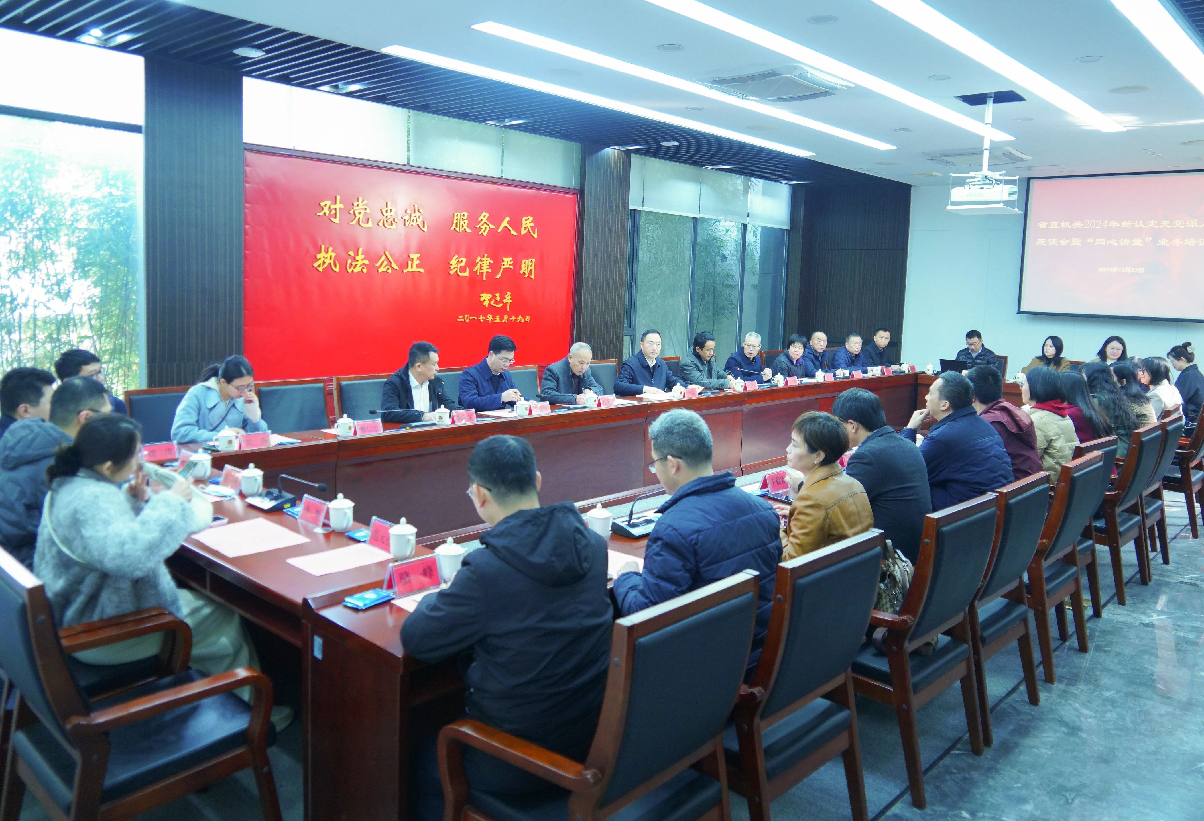 12月27日,省直機關工委統戰部在福建警察學院舉辦新認定無黨派人士座談會暨“同心講堂”業務培訓會。工委副書記沈燕雄出席并講話。
